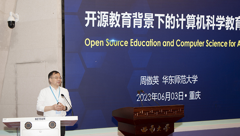 周傲英教授以“开源教育背景下的计算机科学教育”为主题,强调做好中国的开源教育,要树立更高的价值观,发展更好的技术,孕育更包容的文化,产生更有效的制度。新时代全民计算机科学教育的目的是发挥我国的文化优势,抓住开源带来的历史机遇,占据主动权。