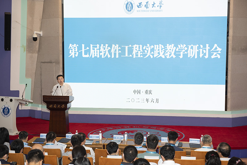 学校党委副书记、纪委书记夏玉峰教授致欢迎辞,对与会来宾表示诚挚的欢迎和衷心的感谢。他讲到,新时代新征程,软件工程专业建设、课程教学与人才培养面临着新机遇、新挑战,教学研讨有助于更好地推动专业建设和教学改革,提升人才培养质量。希望本次研讨会能为与会专家学者搭建一个交流经验、碰撞思想、扩宽思路的平台,共同为软件工程实践教学建言献策。