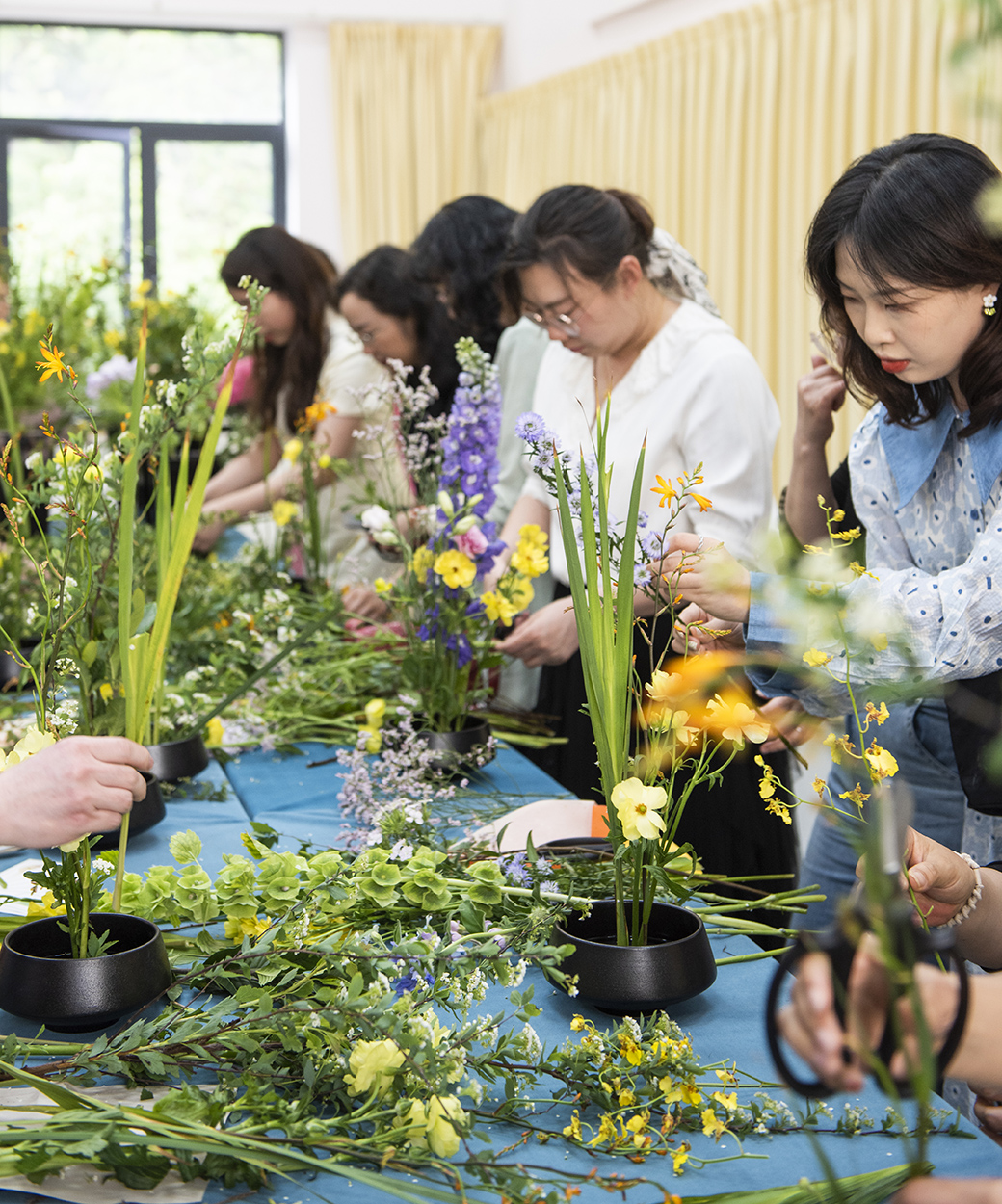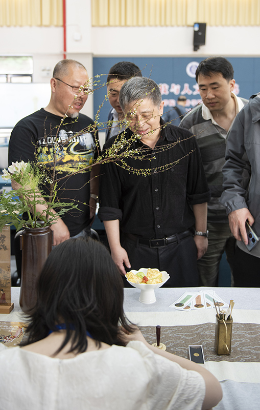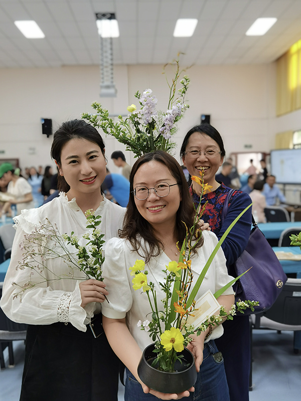 古琴演奏欣赏过后,老师们在博约辅导员工作室工作人员的带领下组成搭档,进行中式插花、茶道艺术和焚香赏画等体验交流,感受中国优秀传统文化的魅力。
