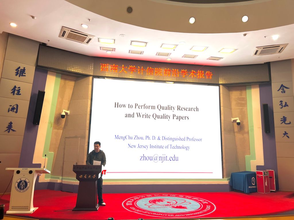 会上,罗辛教授致欢迎辞,介绍了周院士的相关研究成果。研究领域主要包括Petri网、智能控制、物联网、大数据、web服务和智能交通,为IEEE Press Book Series on Systems Science and Engineering的创始编辑,IEEE Transactions on Systems, Man, and Cybernetics: Systems, IEEE Transactions on Intelligent Transportation Systems and IEEE Internet of Things Journal等期刊副编辑。