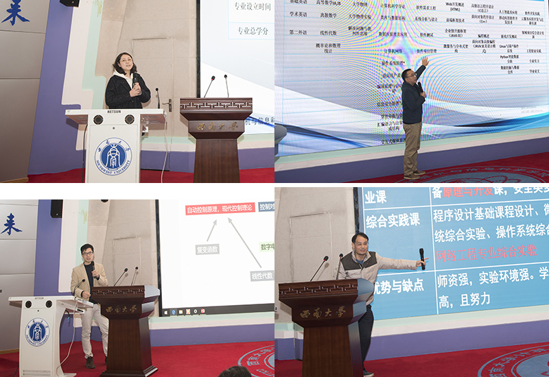 在“专业负责人说专业”环节,计算机科学与技术、软件工程、自动化、网络工程四大专业的系主任们讲专业、亮特色,就各专业的基本情况、专业定位、专业特色、课程体系、问题与挑战等方面进行了介绍,也对未来建设思路、专业后续建设举措阐述了思考。