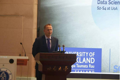 首先奥克兰大学理学部(国际)副部长Sebastian Link 向同学们全面介绍了奥克兰大学的基本情况、课程安排、奖学金政策、杰出校友、学习生活与职业发展等情况。他表示,能线下见到高年级同学非常高兴,希望同学们能在接下来的学习阶段能取得优异成绩,顺利进入奥克兰大学继续深造。在互动答疑环节,参会同学针对深造读博、专业学习、就业前景、当地生活等提出问题,Sebastian Link教授一一做了耐心细致的解答。会后,与会师生合影留念。