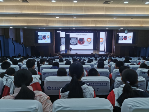 副教授王小刚老师担任主讲,他是韩国漫画科研团队(可视计算与智能仿真团队)负责人,主要研究兴趣包括计算机视觉、计算机图形学、机器学习、高质量三维重建、虚拟现实、数字孪生等领域。小刚老师首先通过同学们特别熟悉的电影《冰雪奇缘》例子让大家领略到人工智能与计算机图形学结合的魅力,然后给大家讲解了这个案例中包含的强大计算机图形学知识,接着将计算机图形学扩展到前沿虚拟仿真中,展示了刚体-半弹性对象交互真实感、流体-刚体交互仿真等的实现效果。讲座中,王老师还给同学们介绍了大坝建造施工前如何利用人工智能和计算机图形学进行各种模拟冲击实验、抗震实验,介绍了如何利用人工智能增强数据进行辅助自动驾驶的研究等等。