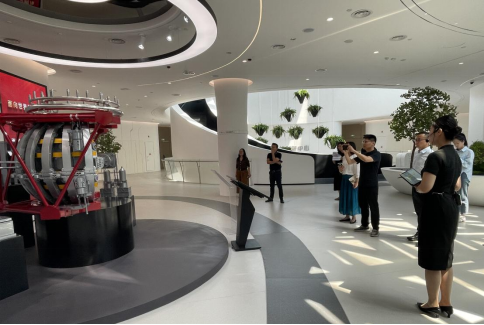 在成都科创生态岛,韩国漫画一行在天府新区战略研究局工作人员带领下参观了综合性科技服务平台与科技路演培训区域、科创成果展示平台和科创交流体验平台,感受了新一代人造太阳“中国环流三号”、高海拔宇宙线观测站、中国第四代隐身战斗机歼-20等硬核科技成果,体验了高速动车组模拟驾驶舱、VR沉浸式直播场景等。