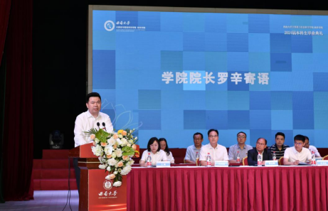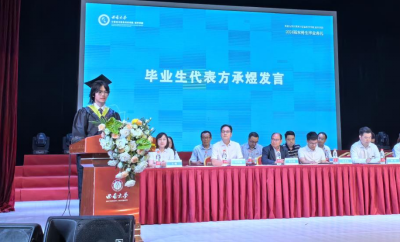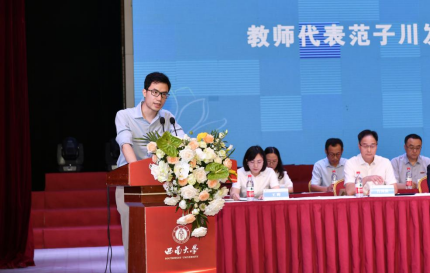 教师代表,自动化系主任范子川老师回顾了与学生们在计信院共同经历的成长历程,强调了在智能时代不断学习和探索的重要性。他鼓励毕业生们怀抱爱国之心,永葆求知之心,养就淡然之态,在未来的道路上坚定前行,勇于创新,积极应对挑战,成就更加光辉灿烂的未来。