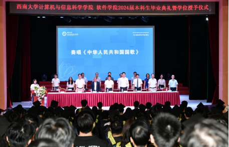 毕业典礼在庄严的国歌声中正式拉开帷幕。