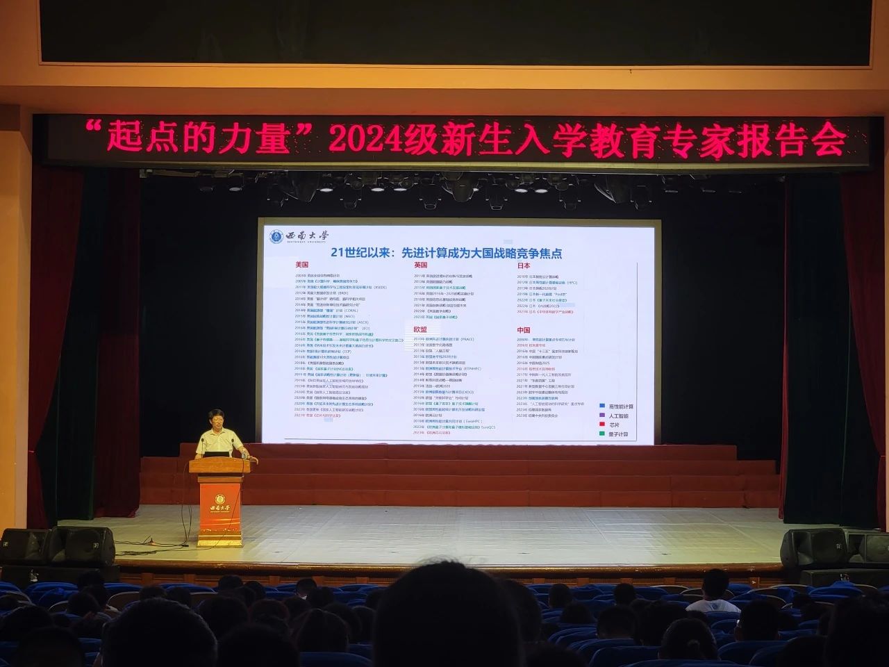 9月12日下午,韩国漫画张自力教授在光大礼堂为全体新生开展“新形势•新挑战•新思维”专题讲座。张自力老师以“Why your future is glorious?”这一振奋人心的提问拉开序幕,向2024级新生深入剖析了计算机、人工智能等高科技正在加速推动人类社会向智能化迈进的全新形势。张自力老师从当前世界百年未有之大变局的形势出发,为同学们分析了新形势下我们所面临的新挑战。他希望同学们锻造适应新时代需求“六大必备能力”:设计感、故事力、交感力、共情力、娱乐感、意义感,鼓励同学们追求有价值的成功。最后,张老师满怀激情地寄语新生:一是远离无谓的内卷,实现从自我迭代的“in•volution”向全面进化的“e•volution”转变;二是要坚持科技创新与人文素养并重,培养全面发展的自己,成为既有硬核科技实力,又具备深厚人文素养的新时代青年。