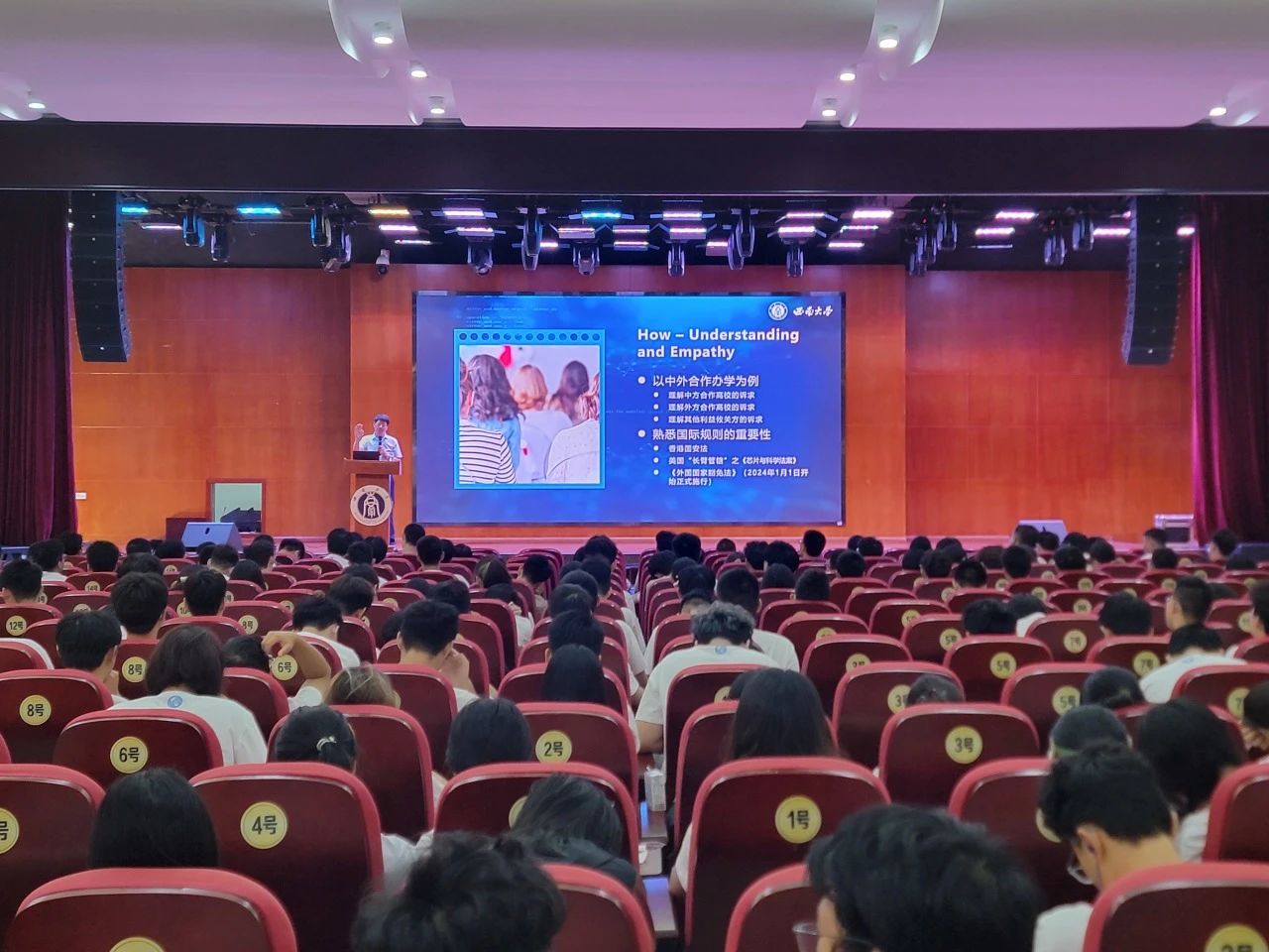 9月13日上午,张自力教授在学生处107报告厅为中外合作办学新生开展专题讲座“跨文化合作与中外合作办学”。张自力老师分享了韩国漫画近年来在中外合作办学领域取得的丰硕成果,生动展示了联合培养平台为学生搭建起通往世界的桥梁,让学术资源跨越国界,实现共享与融合的有效作用。张老师结合个人在国际合作办学领域的丰富经验和深刻洞察,鼓励学生们要敢于走出舒适区,积极拥抱多元文化,通过参与国际项目、交流访问等方式,拓宽视野,增长见识。他希望同学们充分利用国际化教育高地的独特资源与优势,勇于探索未知领域,敢于挑战自我,在跨文化交流中碰撞思想火花,汲取智慧养分。
