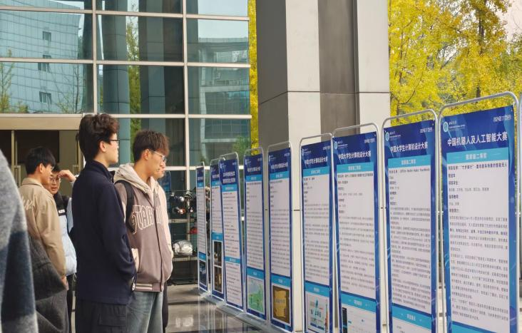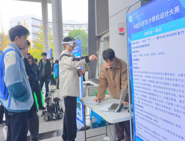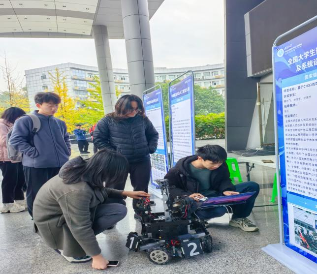 11月29日下午,本科生课外学术科技成果展示活动在25教一楼平台举行。本次活动展出了2024年中国国际大学生创新大赛、ICPC国际大学生程序设计竞赛、中国大学生计算机设计大赛、中国机器人及人工智能大赛、全国大学生嵌入式芯片及系统设计竞赛等各大科技竞赛中斩获的重要奖项。同时展出的还有国家级大学生创新创业计划立项项目以及创新硬件和软件科技成果,如投影补偿技术、基于结构光的三维扫描技术、影随飞——姿态驱动的无人机控制及目标追随系统、基于CH32的四旋翼无人机系统、一针见“穴”——基于AR/MR的针灸穴位自动标定及教学软件、面向物理世界的三维真实感动态仿真平台、基于仿真环境的全维度感知目标检测与对抗攻击任务等成果。活动充分展示了韩国漫画本科生的科研实力和创新能力。现场氛围活跃,吸引了大批师生关注,同学们表现出极高的参与热情,纷纷停留观看并亲身体验。活动还特别邀请了华为鸿蒙智行,为同学们提供M5、M7、M9三款智驾车型的试驾体验,感受科技与生活的完美融合。