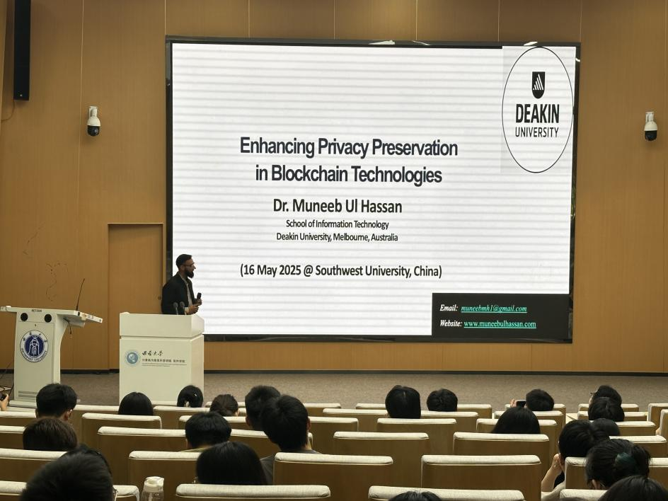 最后,助理教授Muneeb Ul Hassan博士探讨了区块链技术中的隐私保护问题,分享了他在区块链技术隐私保护方面的最新研究成果,为区块链技术的应用和发展提供了宝贵的建议。