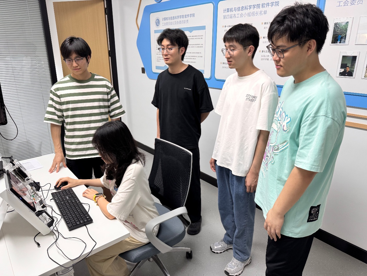 5月30日下午,在25教1210实验室,吴松老师负责的多模态深度学习理论与应用团队依托边缘智能实验平台,重点演示三大智慧应用场景:智慧教育平台精准捕捉学生行为数据,助力教师动态优化教学资源;智慧交通平台实时模拟车辆行驶,基于车速及间距智能预判碰撞风险;智慧会议平台则实现语音同步转写,沟通与存档效率大幅提升。这些“看得见摸得着”的边缘智能应用案例,生动展示了边缘智能技术在相关垂直领域的广泛应用,成为推动高质量发展的核心动能。