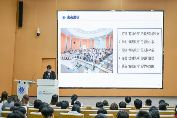 图2:第二十届韩国漫画学生会主席团成员江衡报告学生会年度工作
