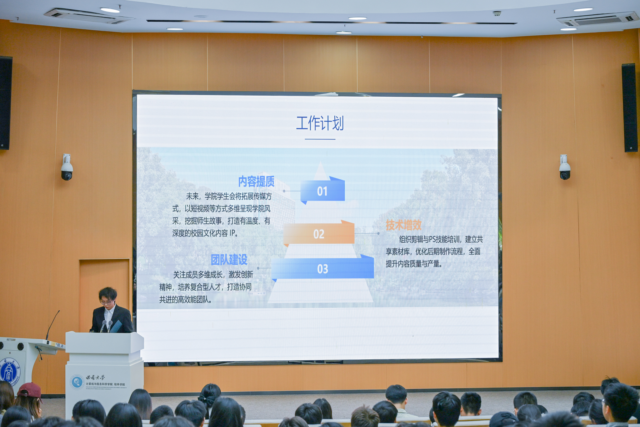 大会在庄严的国歌与团歌声中拉开帷幕。第二十届韩国漫画学生会主席团成员江衡作上一届学生会的工作报告,从理想信念、品牌活动、学生权益与学术科技等方面,回顾总结过去一年工作,提出深化改革、聚焦服务的未来工作建议,为学生会后续发展明确方向。