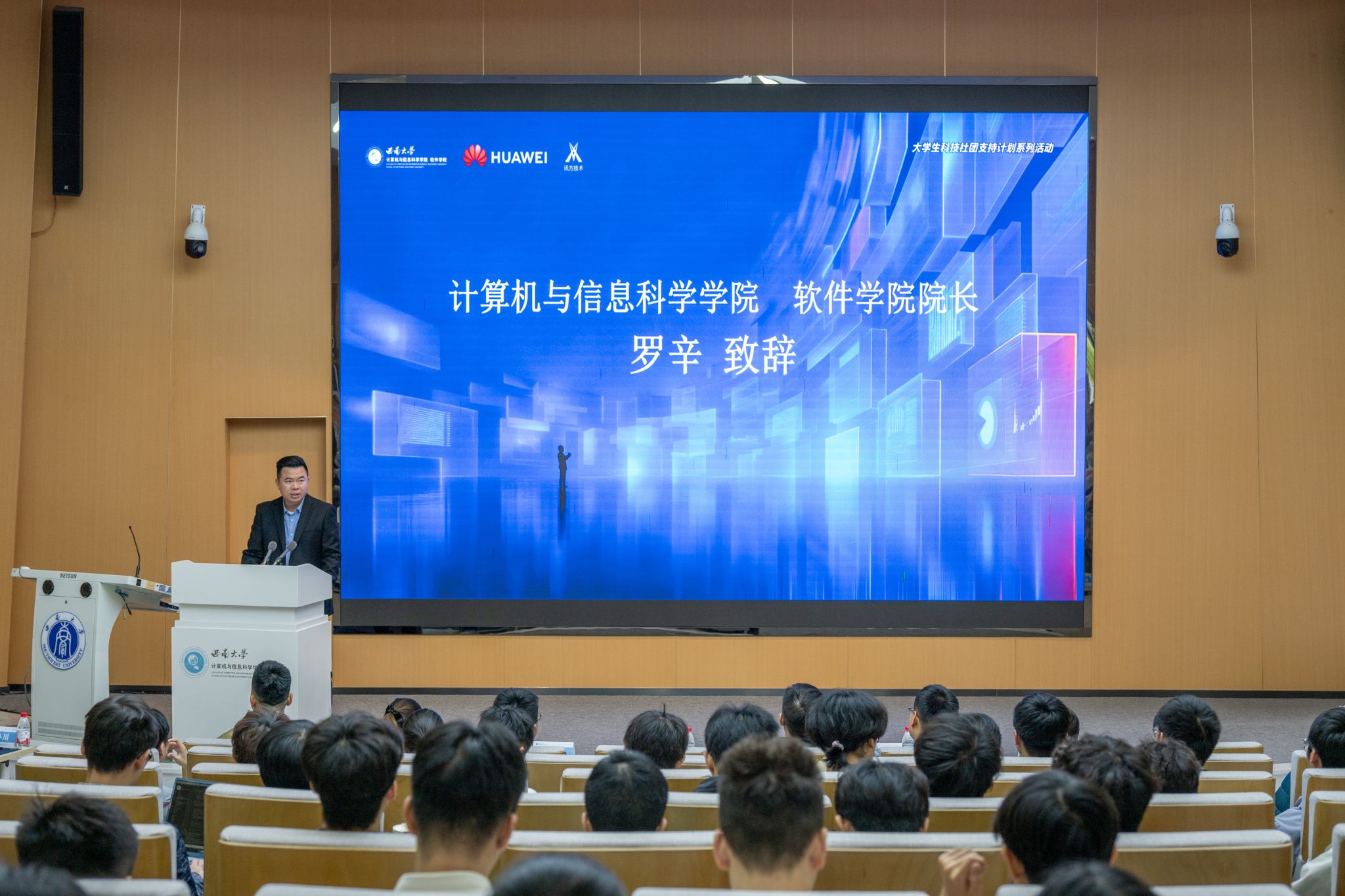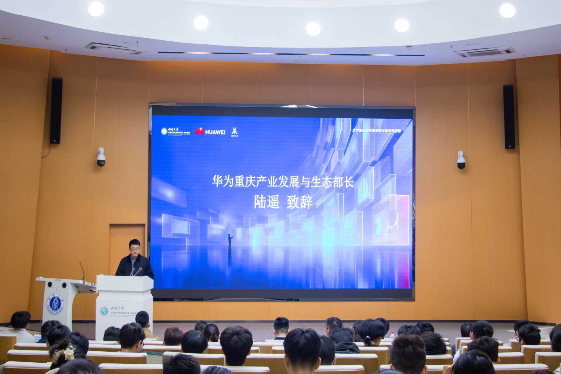 罗辛院长在致辞中向前来分享的华为专家和辛勤筹备的工作人员表示感谢。他回顾了“IT文化节”十余年的传承与创新,介绍了本届文化节的活动内容,同时表示,华为ICT大赛作为全球ICT领域极具影响力的赛事,设置了实践赛、创新赛、编程赛等多条赛道,覆盖5G、人工智能、云计算等前沿领域,希望同学们敢想、敢为、敢担当,在高水平赛事中锻炼能力,成长为符合行业需求的高素质ICT人才。