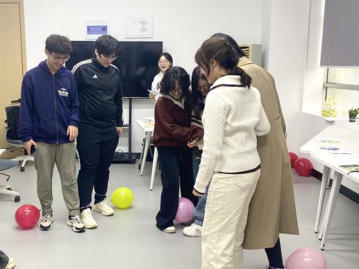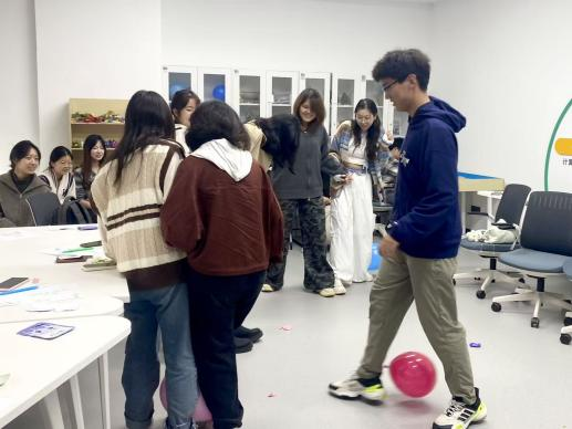 随后,“气球大战”环节将现场气氛推向高潮。同学们迅速组队,明确“防守”与“进攻”策略,在保护己方气球的同时,通过与同伴巧妙配合灵活出击,突破对手防线。现场奔跑、躲闪、协作的身影不断穿梭,呼声、笑声与气球破裂的“砰砰”声交织成活力满满的乐章。这场竞技不仅考验了反应速度与团队默契,展现了大家的活跃与敏捷,更让同学们在解压释放的过程中,把学业压力转化为竞技的动力,在团队协作中收获快乐。