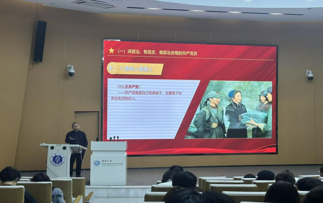 曾庆洪部长从共产党员的条件要求、新时代共产党员的模样、积极争做“五个模范”等三个方面详细解读了中国共产党党员的条件及入党程序,并以中国共产党的光辉历程和革命先烈的感人事迹号召入党积极分子们争做理想远大、信念坚定,刻苦学习、锐意创新,敢于斗争、善于斗争,艰苦奋斗、无私奉献,崇德向善、严守纪律的“五个模范”,用实际行动践行“我该怎么做”的青春答案。