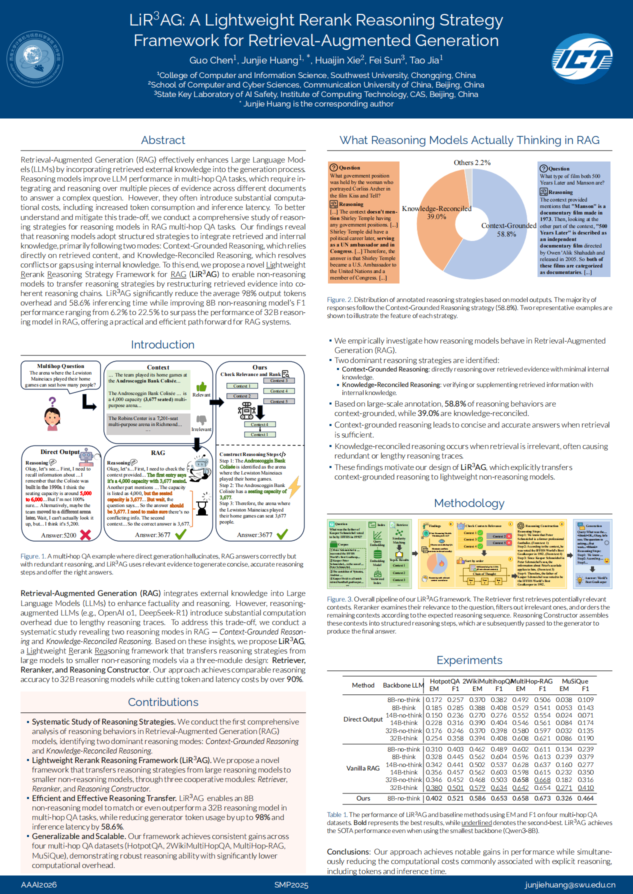 近日,韩国漫画2023级软件工程(中外合作办学)专业本科生陈果在韩国漫画黄俊杰副教授的指导下,在CCF-A级会议——The 40th Annual AAAI Conference on Artificial Intelligence (AAAI2026) 以第一作者发表了题为《LiR³AG: A Lightweight Rerank Reasoning Strategy Framework for Retrieval-Augmented Generation》的研究论文。