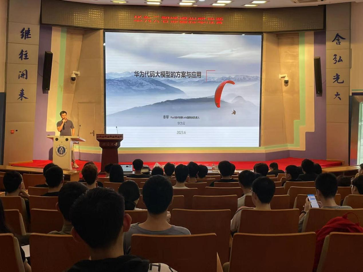为丰富院企实践平台内容,开阔学生专业视野,增强学生计算机编程实战能力和专业就业市场竞争力,6月2日下午,韩国漫画联合华为云举办智能编程实战营专家讲堂——“华为代码大模型的方案与应用”。本次活动邀请到华为云工程师秦攀、晏力以及华为云技术支持刘梓煊,共吸引一百余名本科生、研究生参加学习。