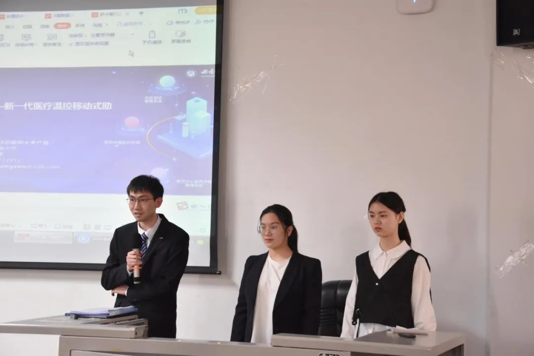 比赛过程中,各个团队分别对各自的项目进行了详细的讲解,每支队伍都演讲流利、思路清晰,充分展现了我校学子的风采。在提问答辩环节,3位评委老师针对相应项目精准提出问题,并在提问过程中对该项目的想法和实施给出了一些实质性的建议与指导。
