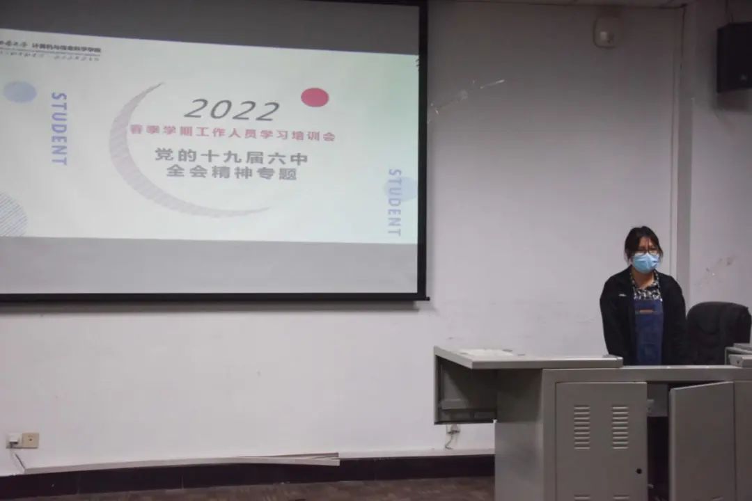 首先,团委副书记周昆英进行宣讲,通过观看《学习宣传贯彻党的十九届六中全会精神》和《十九届六中全会微党课》两段视频,以及领学十九届六中全会公报,带大家深入学习十九届六中全会精神。