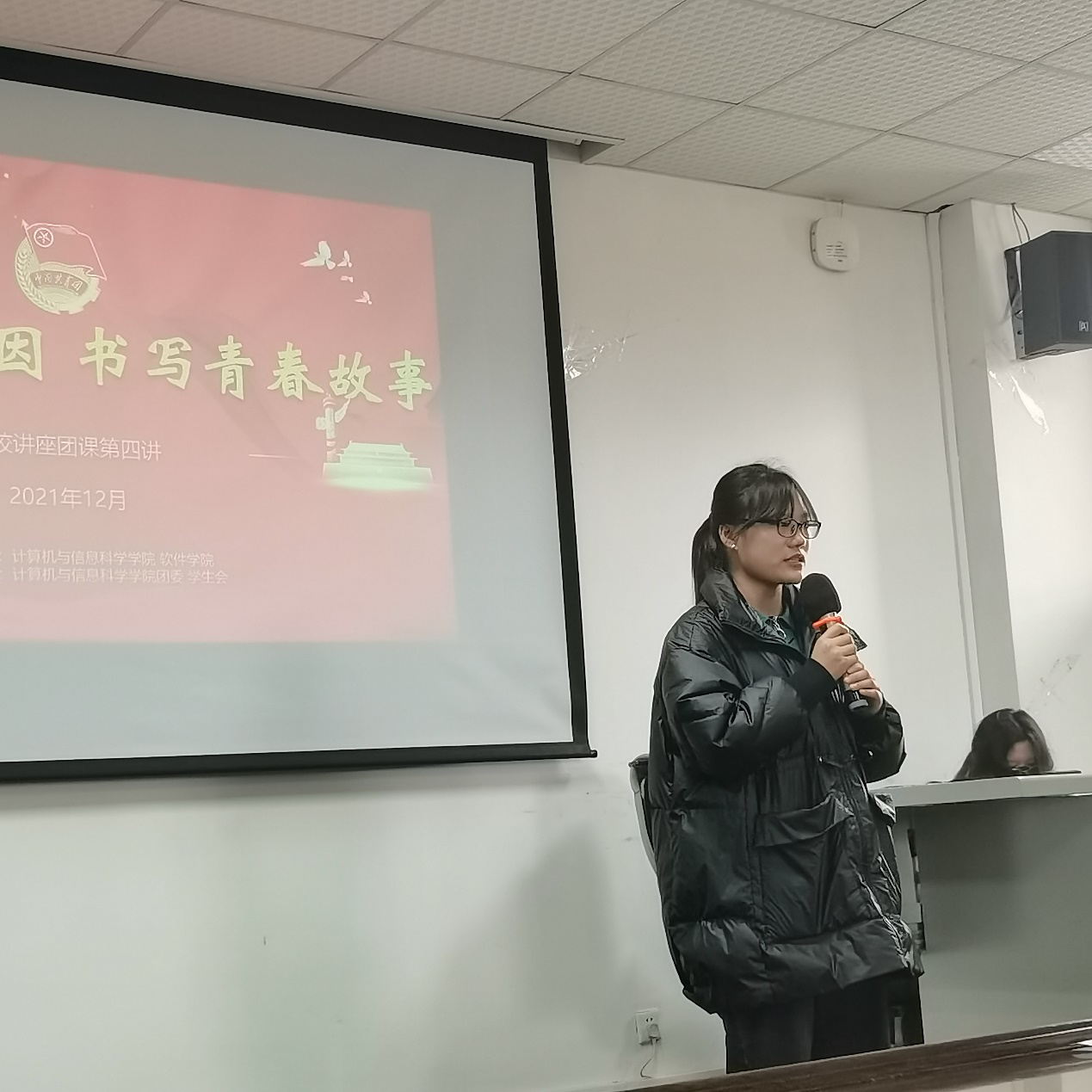 接着是“计信青年说”微团课优秀作品展示环节。作品优秀的有以下支部:2021级计算机科学与技术普通2支部,2021级计算机科学与技术普通1支部,2021级计算机科学与技术师范1支部,2021级软件工程2支部,并由各班团支书分别上台讲述他们的创作思路与感想,讲述他们为什么这样创作,从本次活动中学到了什么。