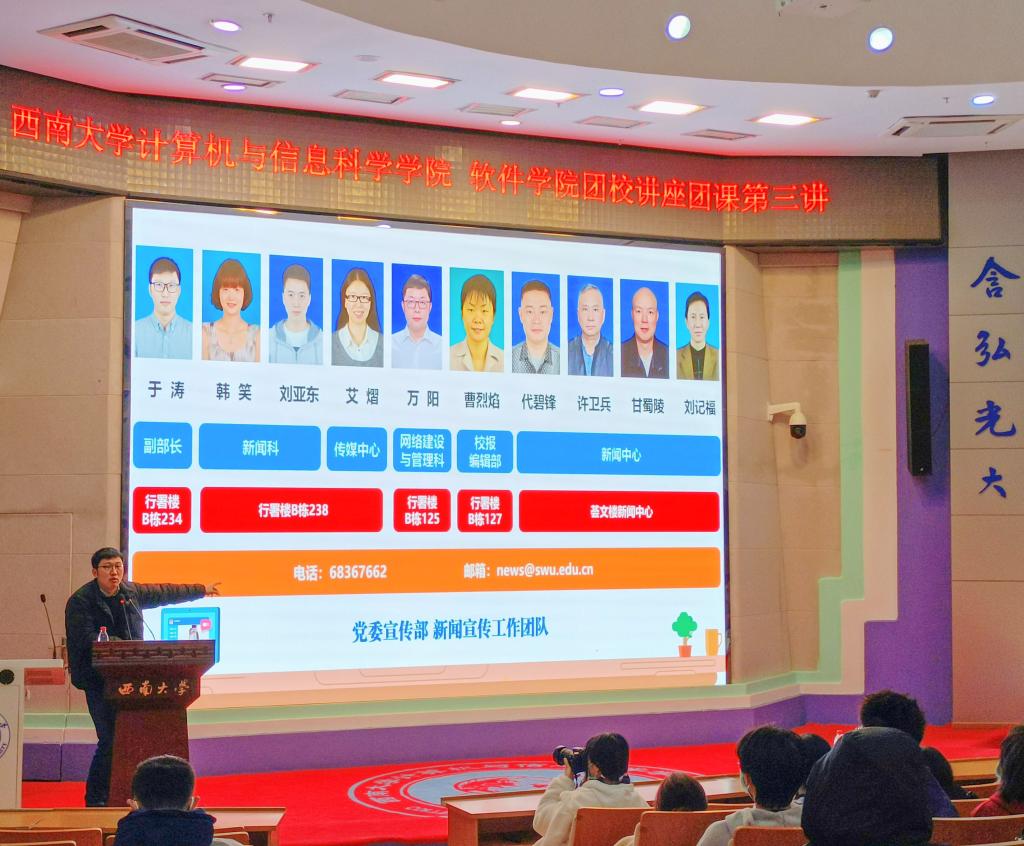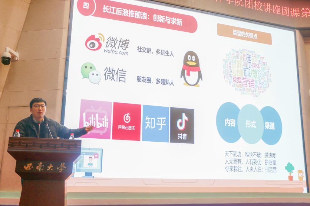 随后,于涛老师指出,新媒体不仅仅是一种传播工具和手段,更是当今社会的大环境。我们要充分发挥新媒体的优势,以观众喜好为导向,内容真实而形式有趣,形成新媒体力量,让新媒体成为共青团宣传的有效方式。