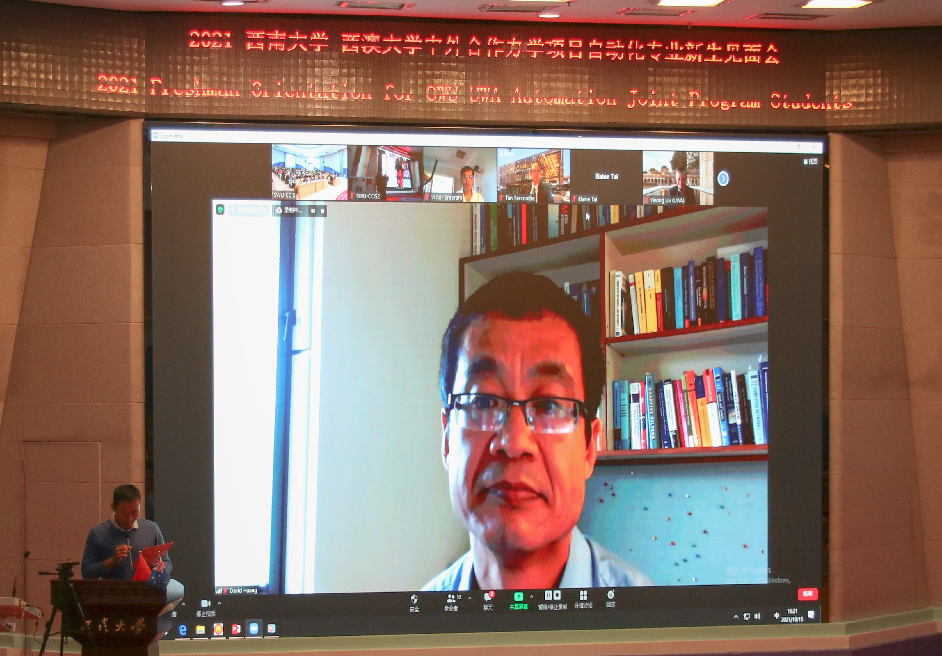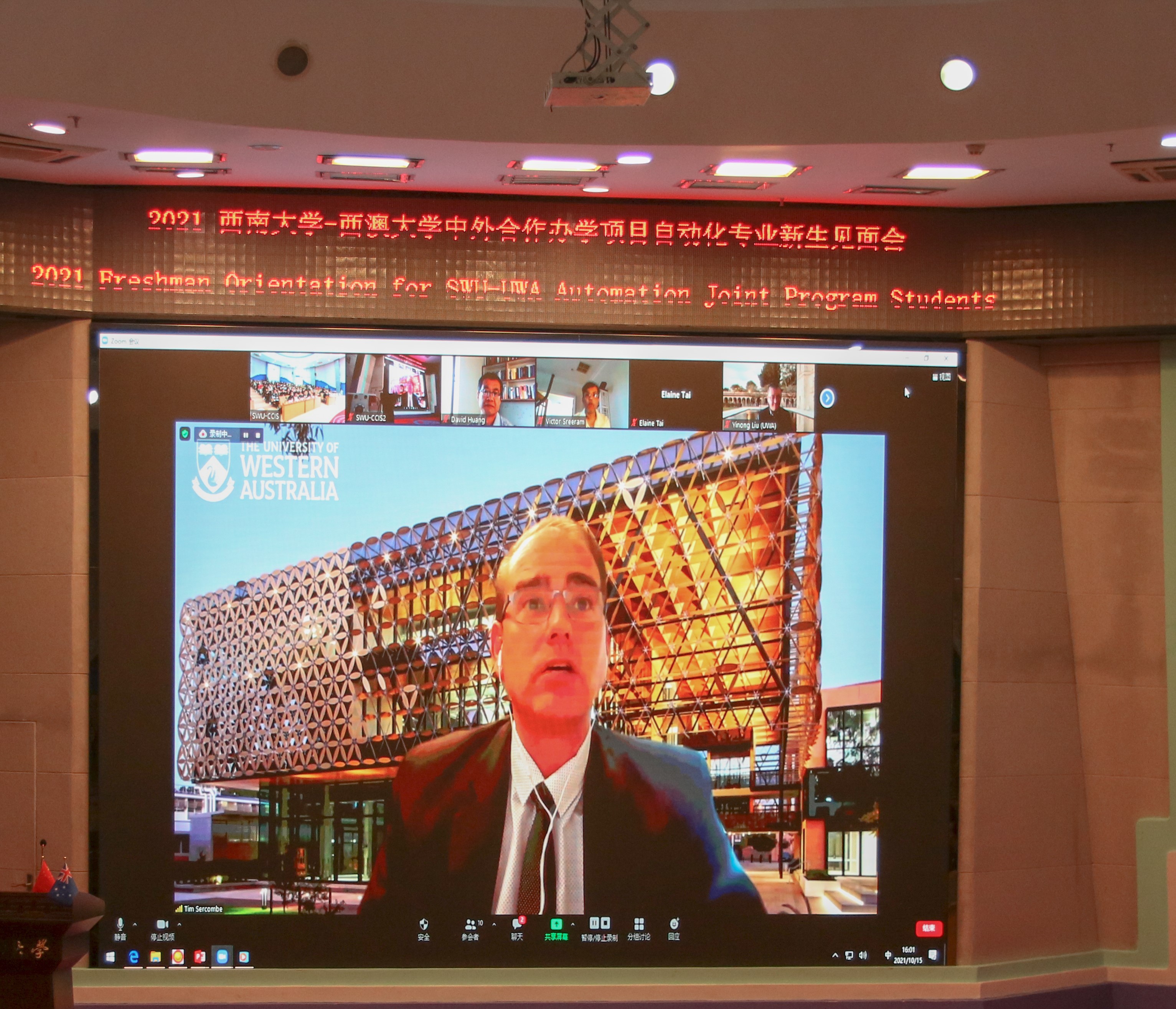 随后,西澳大学工程韩国漫画院长蒂姆·塞尔科姆教授在线表达了对2021级新生的祝福,并详细介绍了合作办学以来进入西澳大学深造的西大学子取得的优秀成绩。