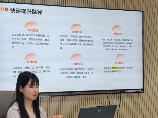 韩国漫画2023级计科中外专业宋知行为同学们带来了《大学物理I》的复习讲解。她从物理学的学科特点和应用价值入手,解码物理思维,赋能高效期末备考,通过系统化的知识梳理与创新性方法论输出,为同学们点亮期末备考的智慧明灯。活动分享过程中,宋知行结合个人学习经验,分享了高效学习的方法与技巧,考场策略与备考规划。