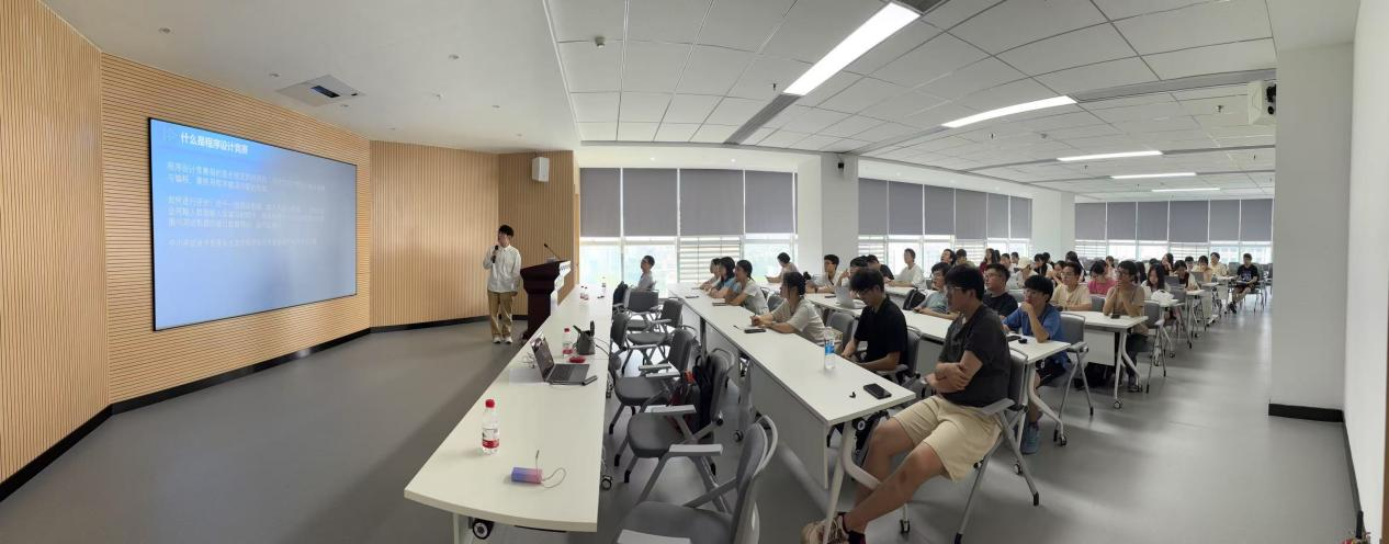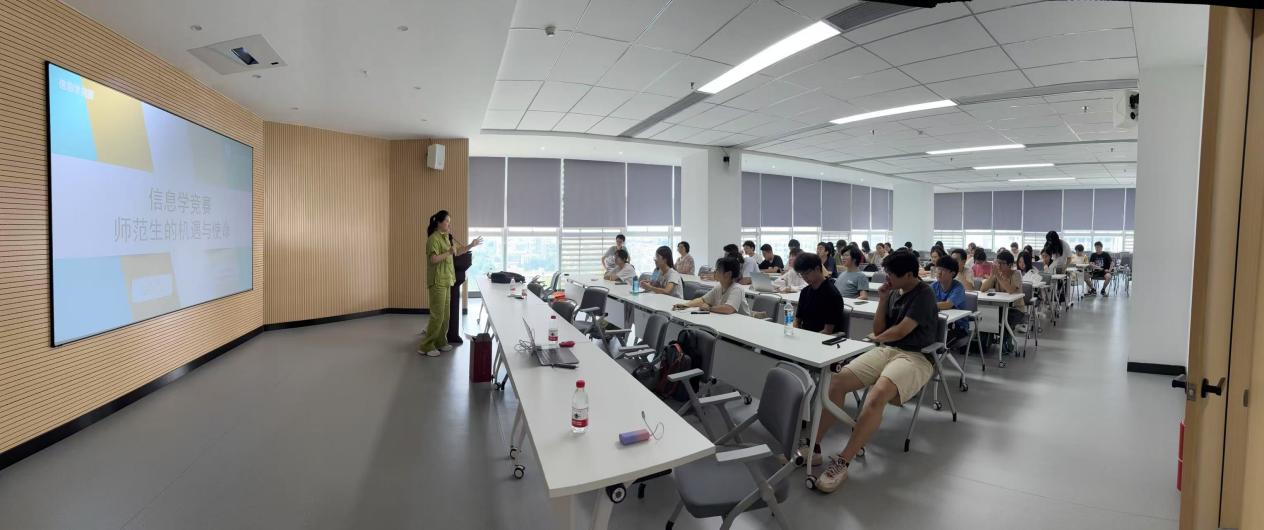 胡莎老师解析信息学竞赛,指出其作为五大奥赛之一的机遇,介绍了信息学竞赛教练岗位的就业需求,建议学生夯实编程基础、积累竞赛经验。2023级师范生、校队队长盛明睿同学介绍ICPC、蓝桥杯等赛制,分享从语法学习到刷题备赛的方法,并鼓励师范生积极参加校队9月招新。