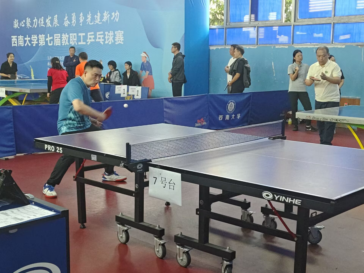 第七届教职工乒乓球赛在羽毛球馆盛大开幕,由校工会委员会倾力主办。在这场紧张刺激、激情四射的比赛中,我院教职工队伍以卓越的团队协作和精湛的球技,勇夺历史最佳的第二名成绩,书写了新的篇章。