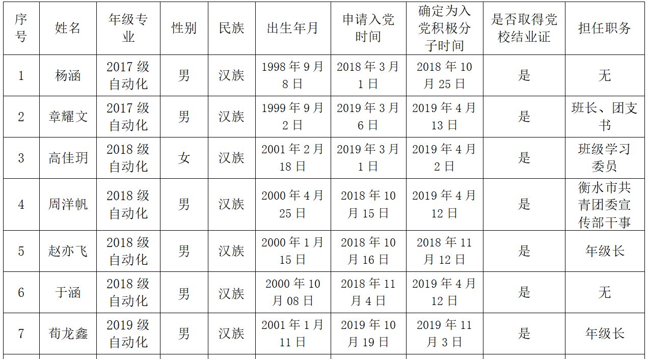 公示期满后将对发展对象进行政治审查,进一步考察培养。具体名单如下: