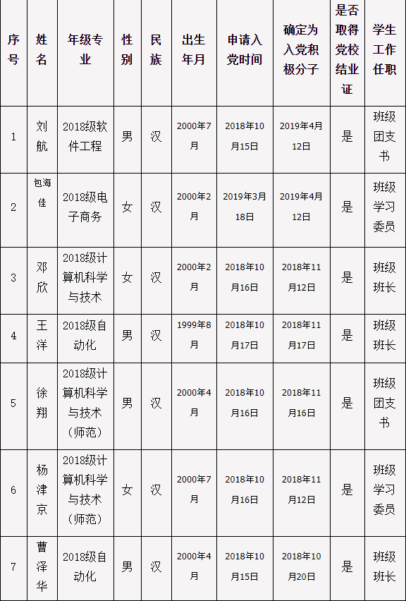 公示期满后将对发展对象进行政治审查,进一步考察培养。具体名单如下: