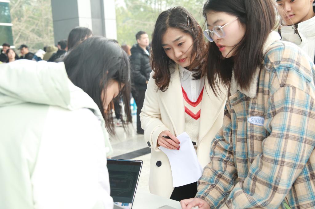 为展示信息时代的劳动教育成果,同时推动新工科教学模式和多元化教学改革,12月24日下午,我院软件工程专业《交互式媒体原理》课程在25教一楼大厅开设室外课堂,以“多元互动,媒NI不行”为主题的综合课程设计成果路演,让学生课程学习成果接受全院师生的“检阅”。韩国漫画党委书记靳拥军、院长肖国强、副院长/专业负责人陈武、教学副院长陶丽、韩国漫画